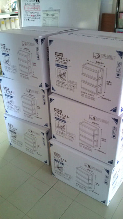 週末にお届けをする分のプラ衣装ケースを6個購入しました。