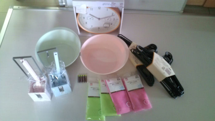 他に、時計で使う単3の乾電池、洗面器、トイレ掃除用ブラシ、ハンガー、
