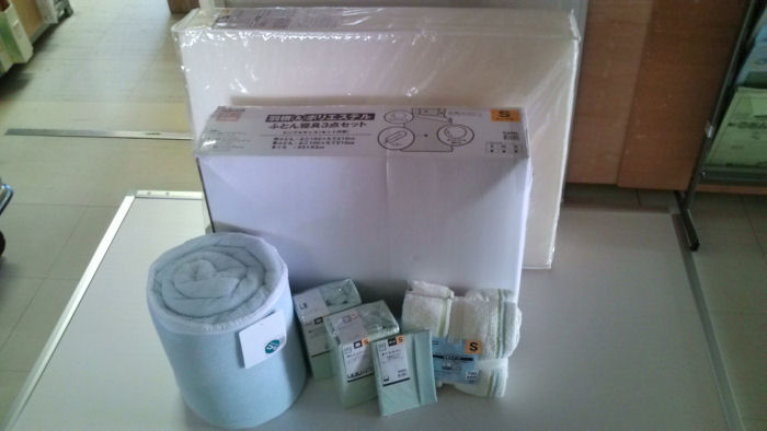 避難所からアパートへとお引越をされた方への寝具セットのお届けです。