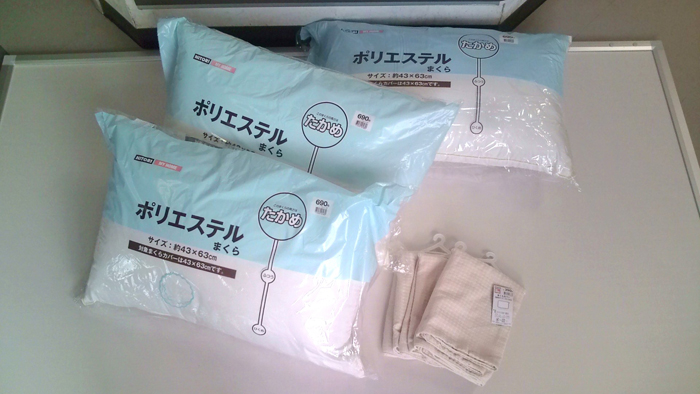 寝具単品でのリクエストです。まくらとカバーをそれぞれ3点ずつ購入しました。