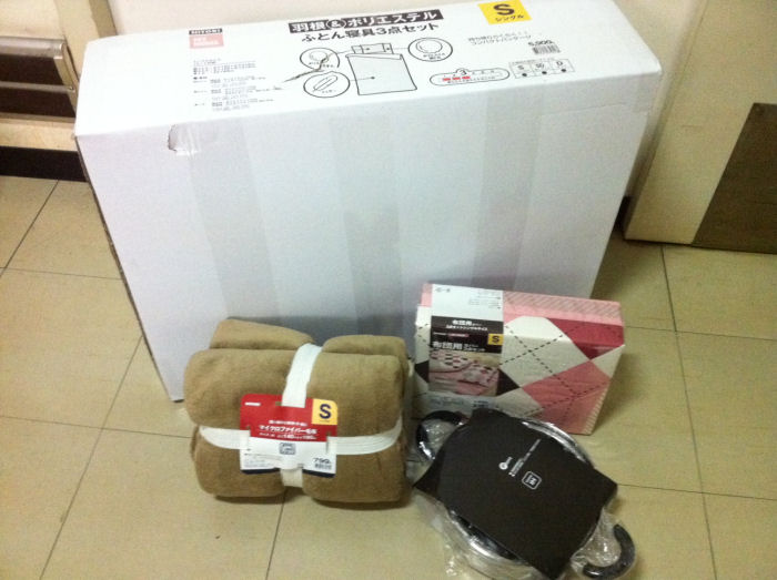 これから民間仮設に移るという方のリクエストで、寝具と毛布、両手鍋を購入しました。