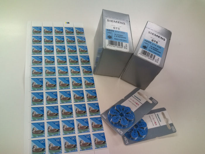 全国からいただいていた補聴器用電池。先月から必要な方々へお配りしています。