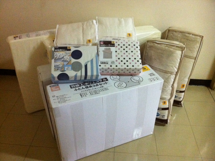 借り物の寝具で落ち着かなかった、という方のために、寝具セットを2組購入しました。